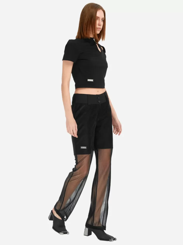Best C2H4 004 – Metallic Liquid Netting Layered Trousers Metallic Black