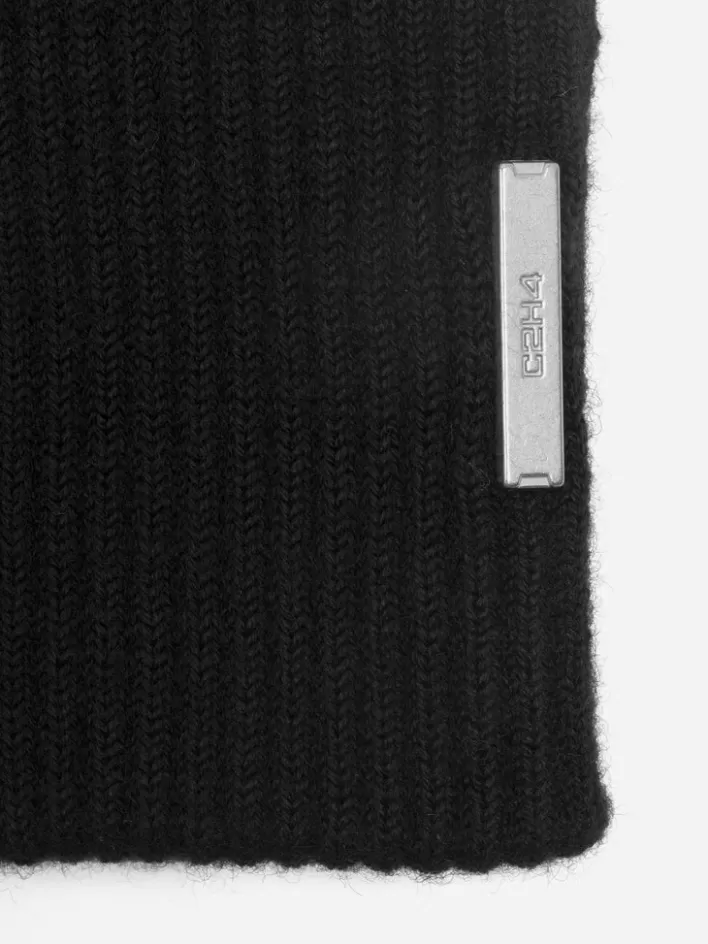 – Knit Wool Gloves In Black- Logo Engraved Tag At Rib Knit Cuff