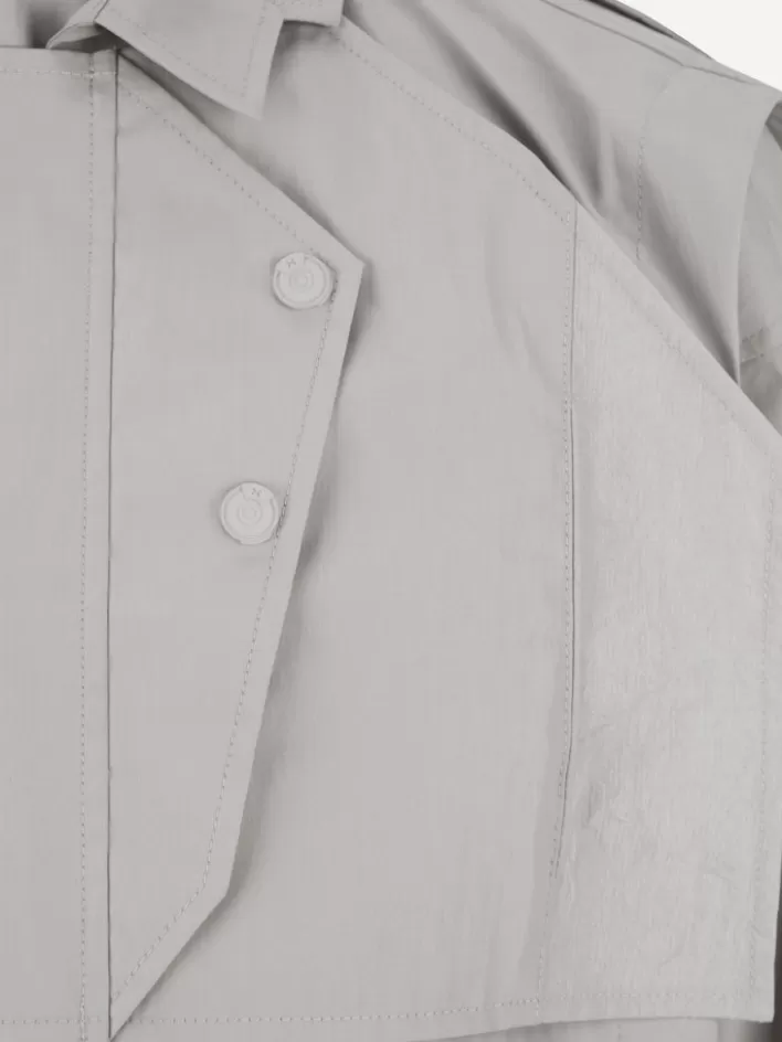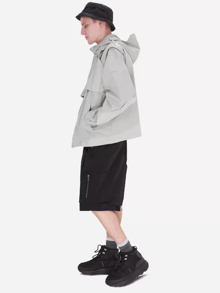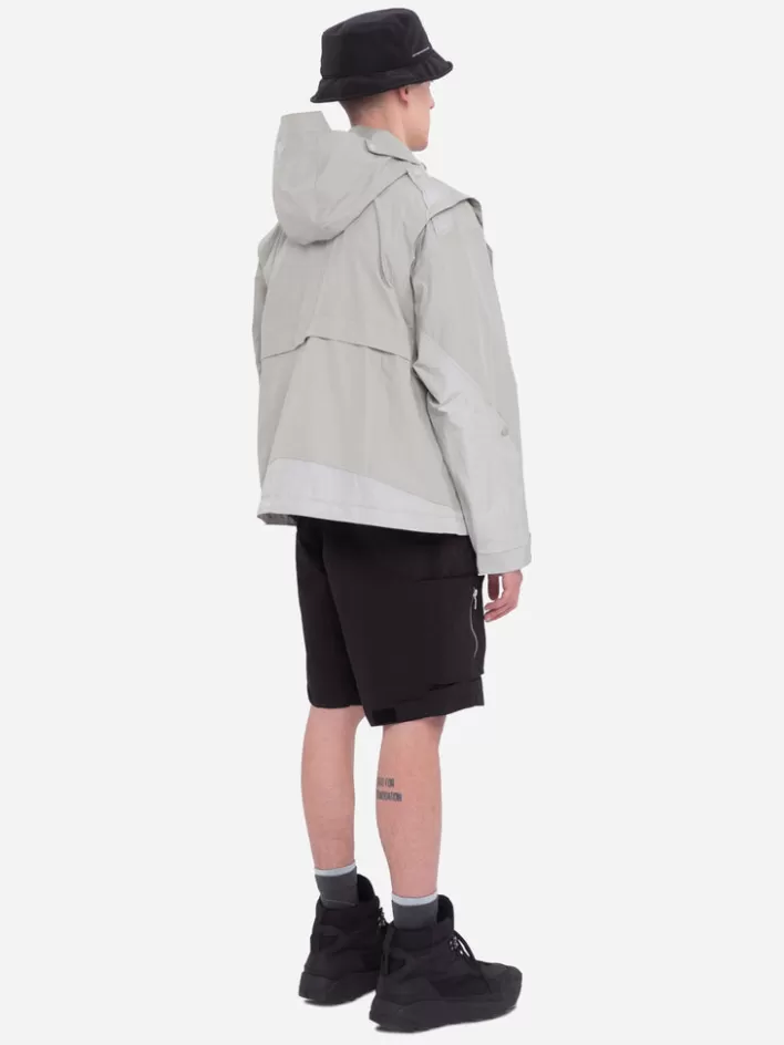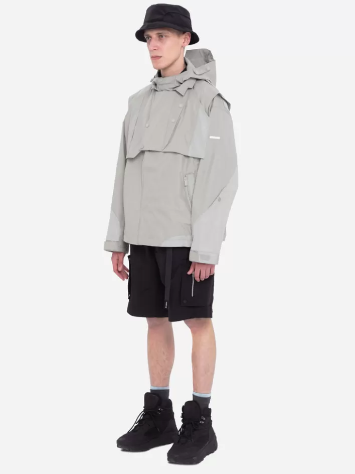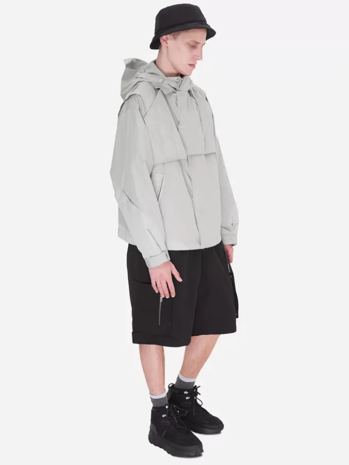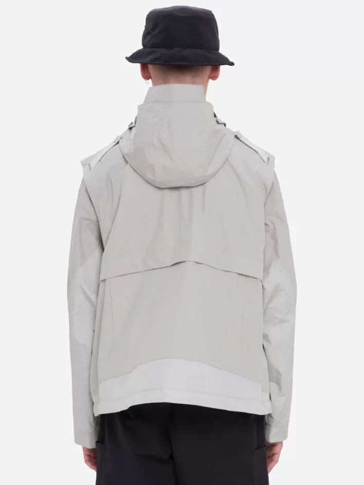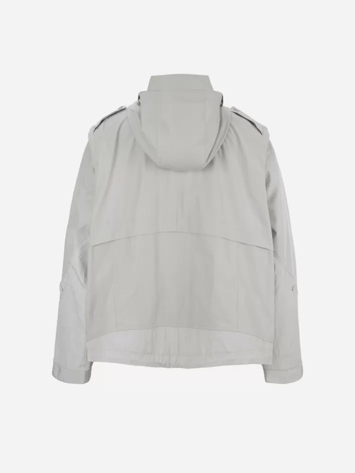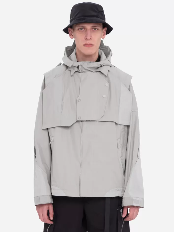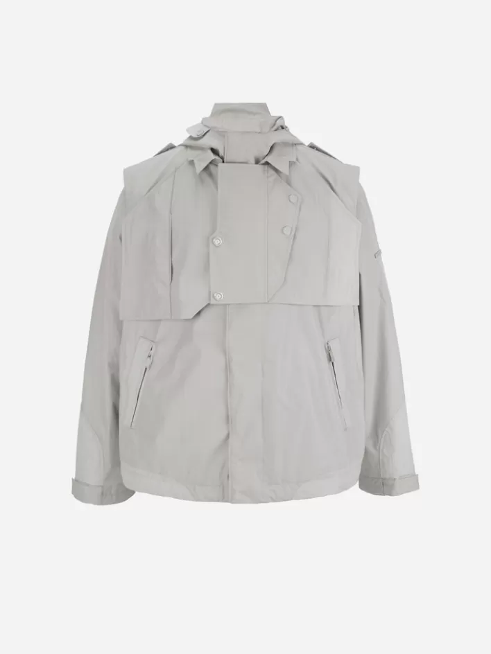 Long Sleeve Waterproof Technical Nylon Jacket. Shelter Silhouette Cutting Back Pattern. Layered Collar. Double Layer Pie…