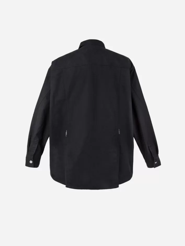 Cotton Twill Shirt In Black. Spread Collar. Botton Closure At Front. Single-Button Barrel Cuffs. Shirttail Hem. Detail L…
