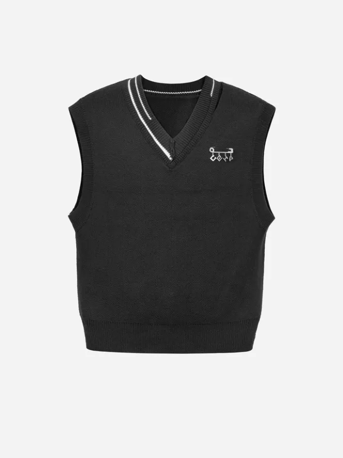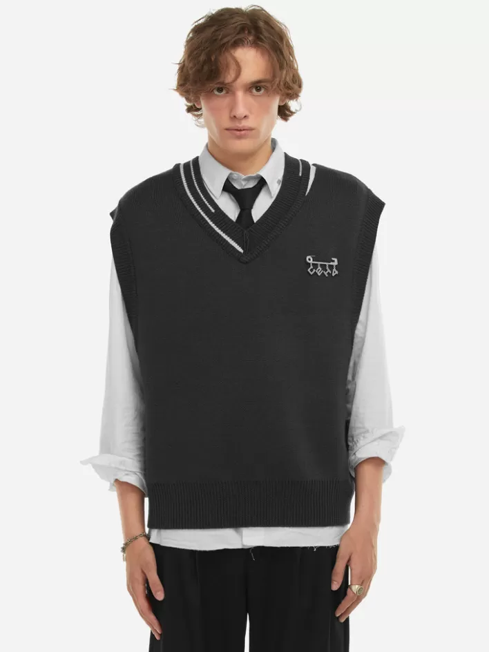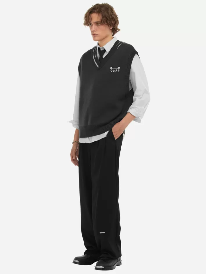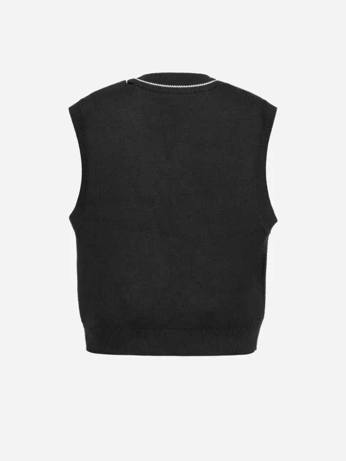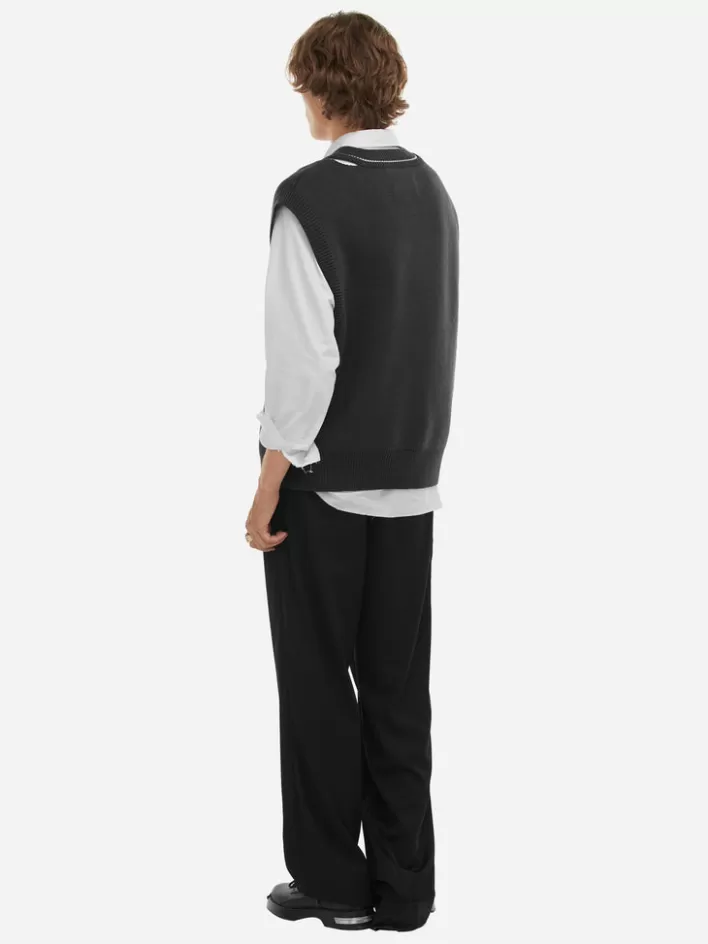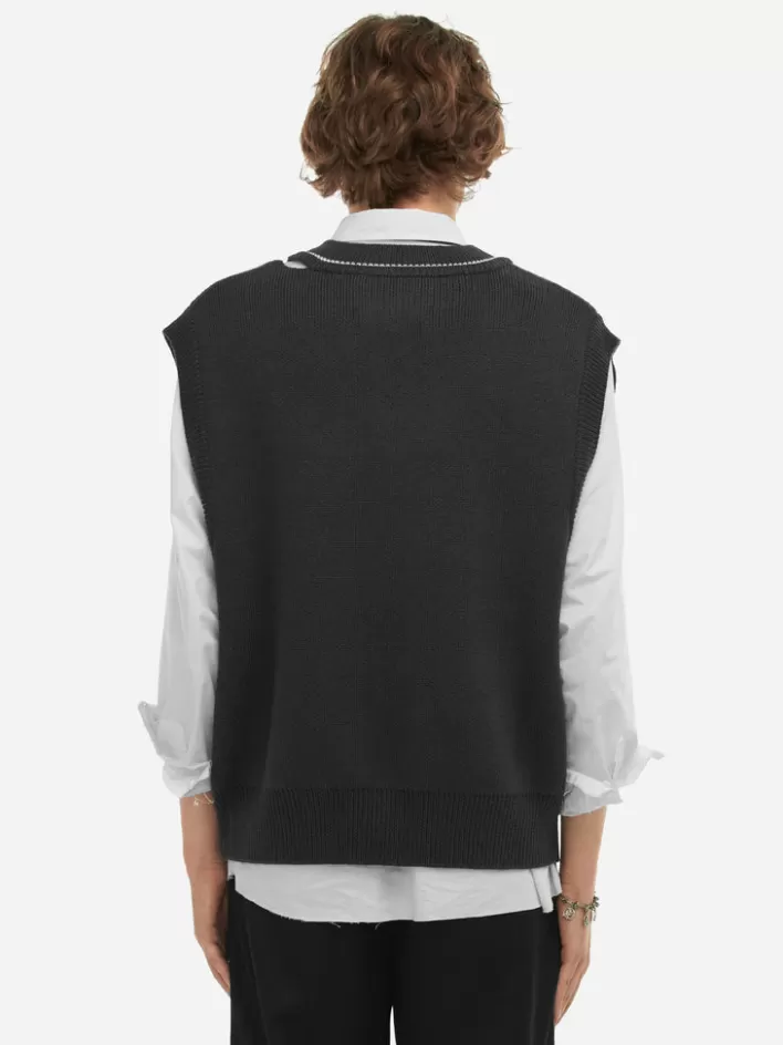 Best Sale C2H4 Staff Uniform Distressed V-Neck Sleeveless Knit Vest Black