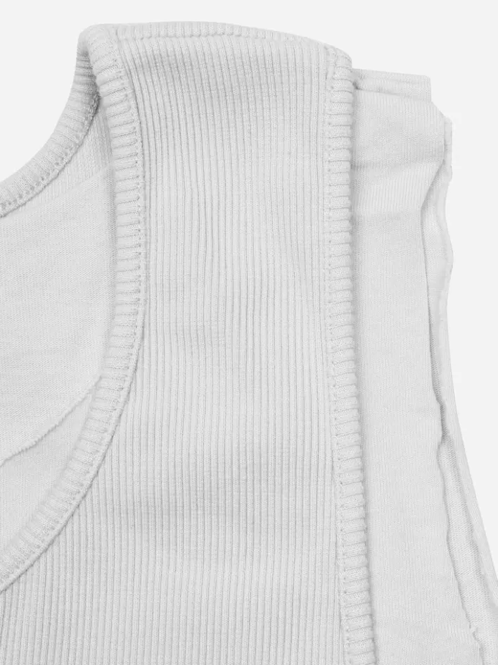 Sleeveless Paneled Stretch Rib Knit Cotton And Cotton Jersey Tank Top In Off-White. Layered Construction. Raw Edges Thro…