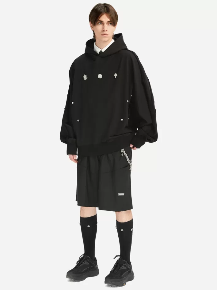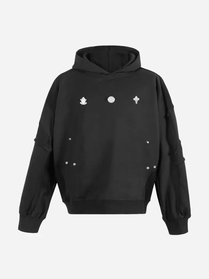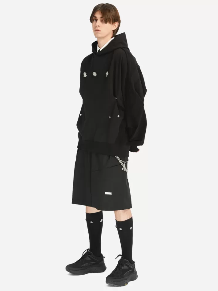 Cheap C2H4 005 – Detachable Scarf Double Layer Hoodie Black