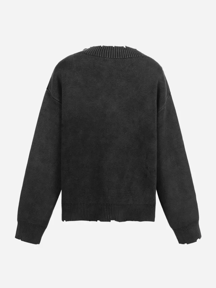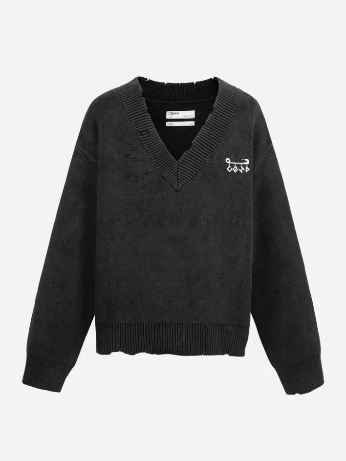 Cheap C2H4 006 – Sunburnt Distressed V-Neck Knit Sweater Fuzzy Gray