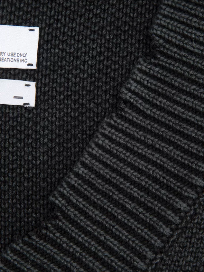 – Long Sleeve Knit Wool-Blend Sweater- Garment Color Fading Tech- Distressing At Rib Knit V-Neck Collar, Cuffs, And Hem-…