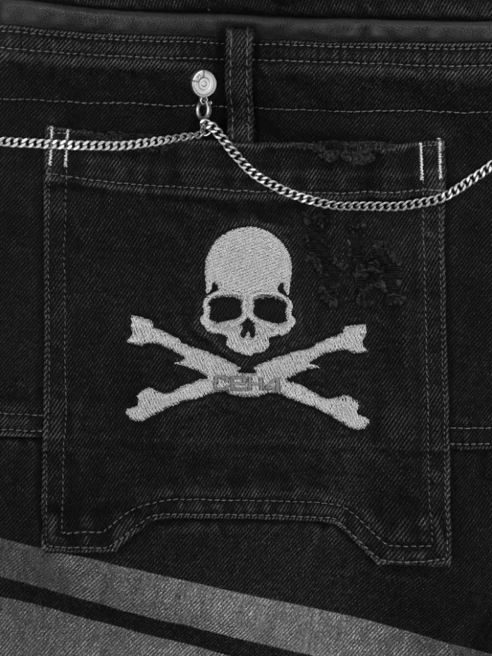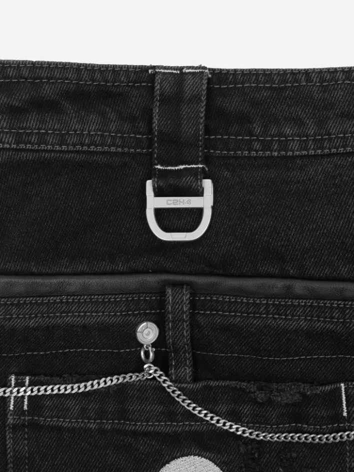 – Logo Engraved Rivet And Chain At Waist. Belt Loops At Waistband.