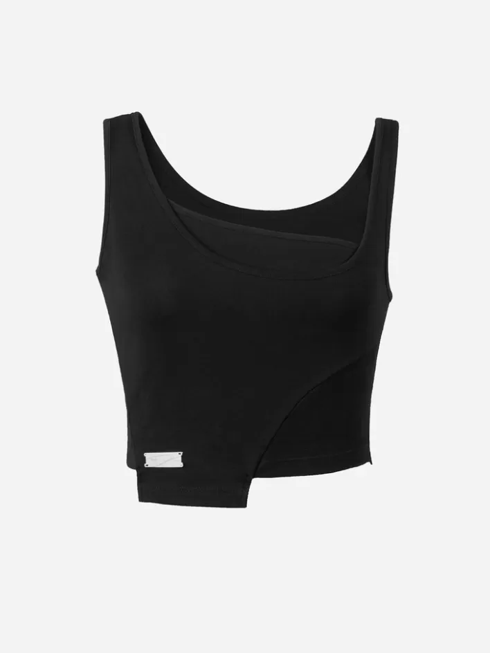 Clearance C2H4 004 – Layered Arch Cutting Knit Tank-Top Trail Black