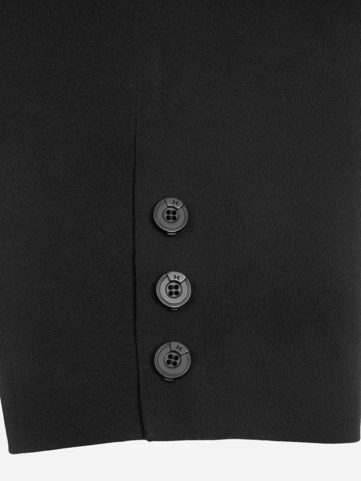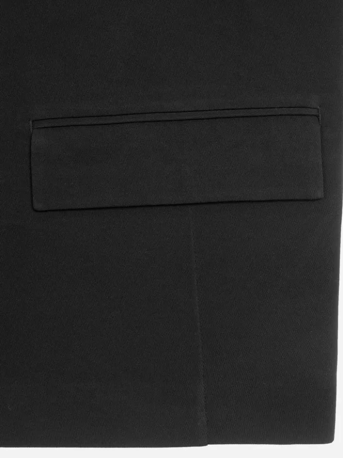 – Notched Lapel With Straight Line Splicing- Hidden Button Closure At Front- Welt Pocket At Chest- Flap Pockets At Waist…