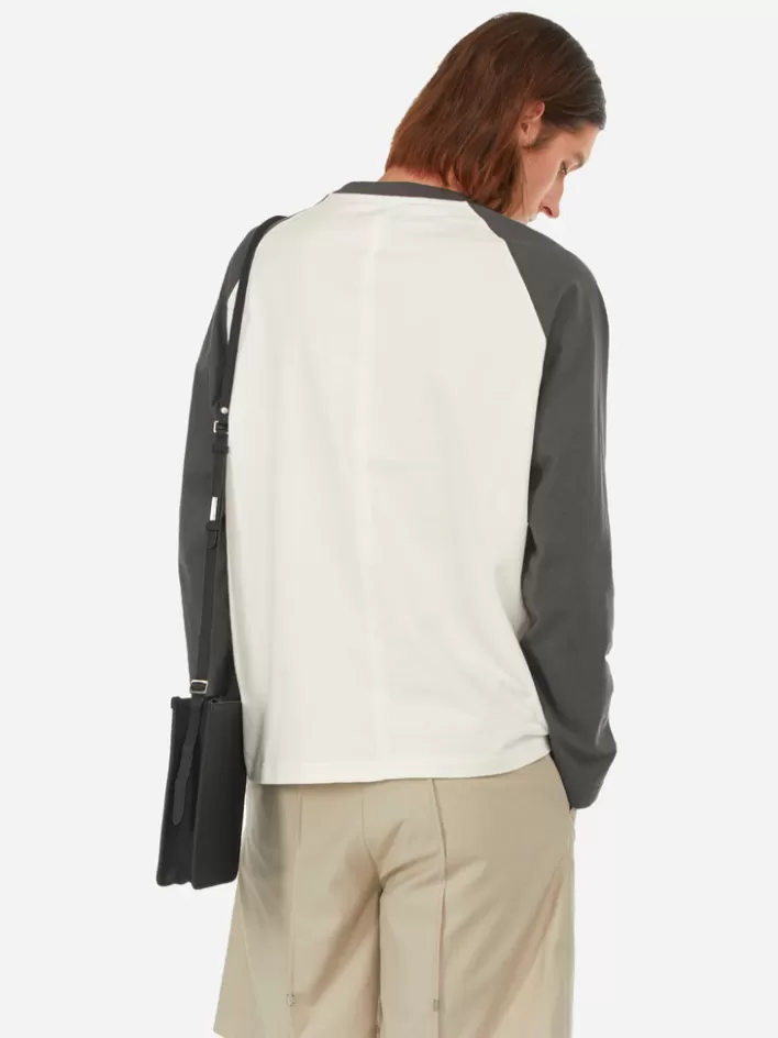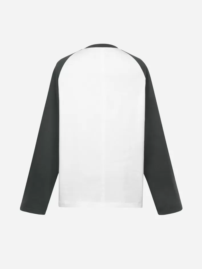 Clearance C2H4 007 – Easeful Paneled Long-Sleeves T-Shirt Gray&White