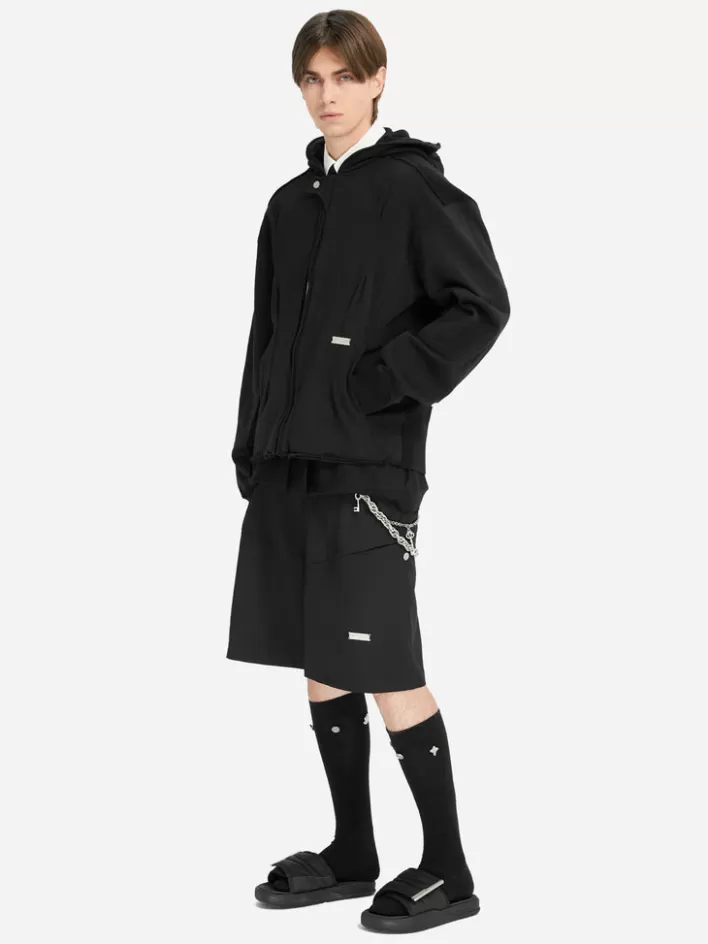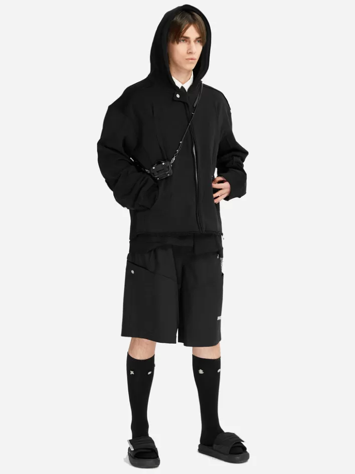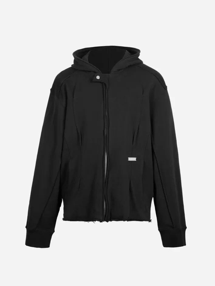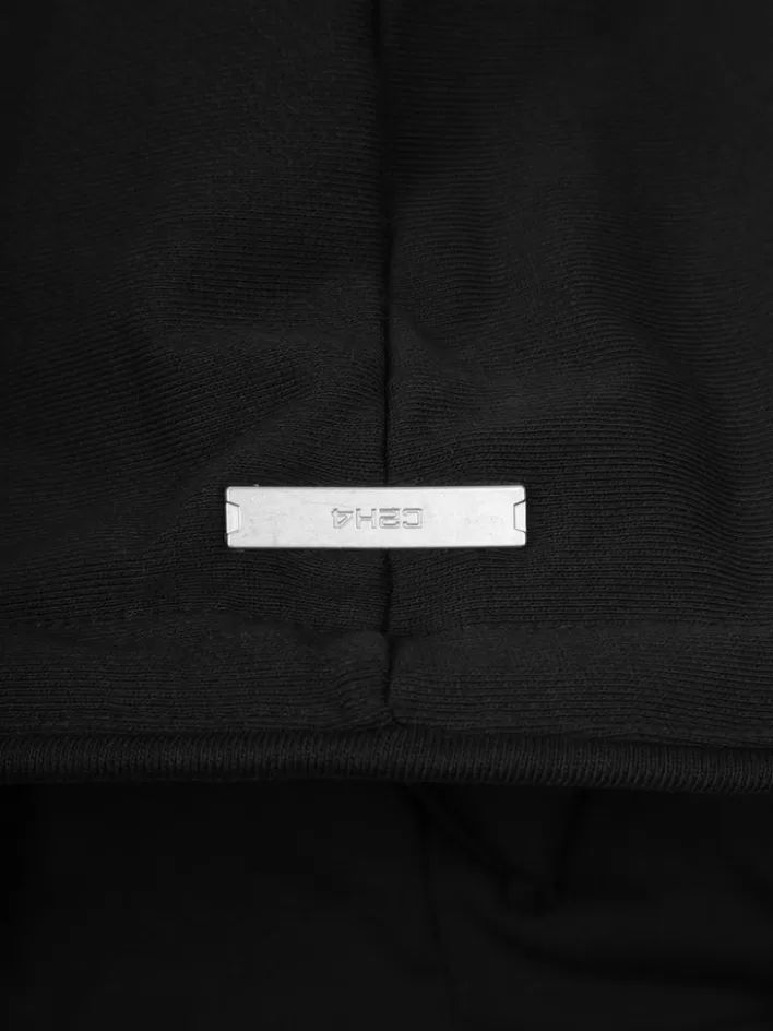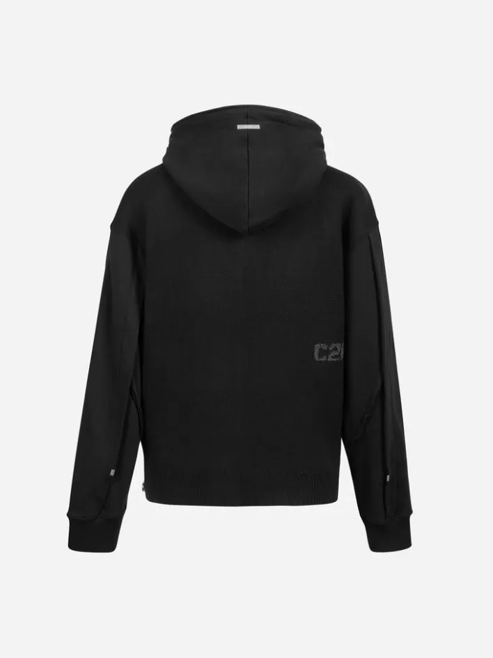 Fashion C2H4 005 – Contrast Raw Edge Sweater Hoodie Oxy Black