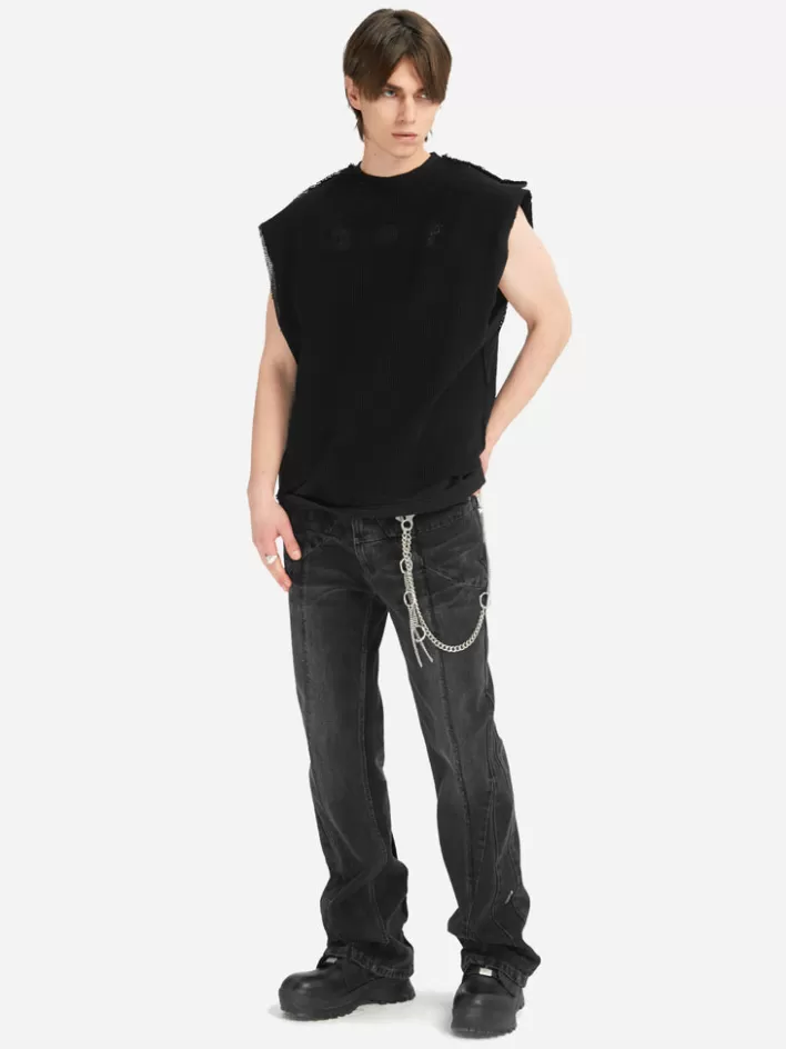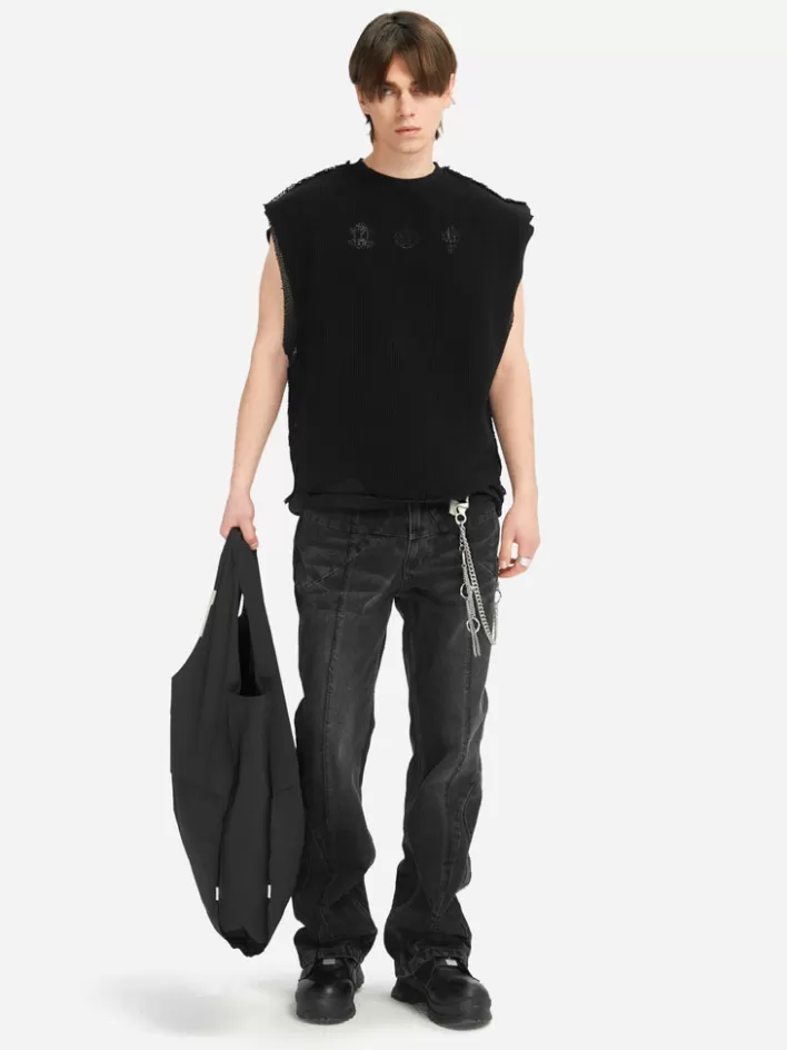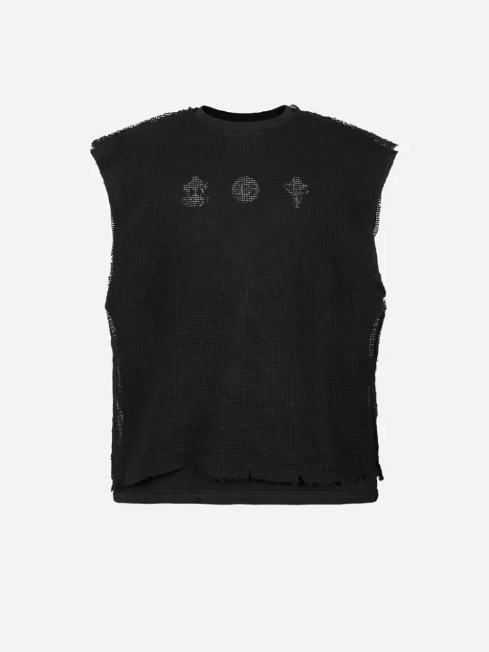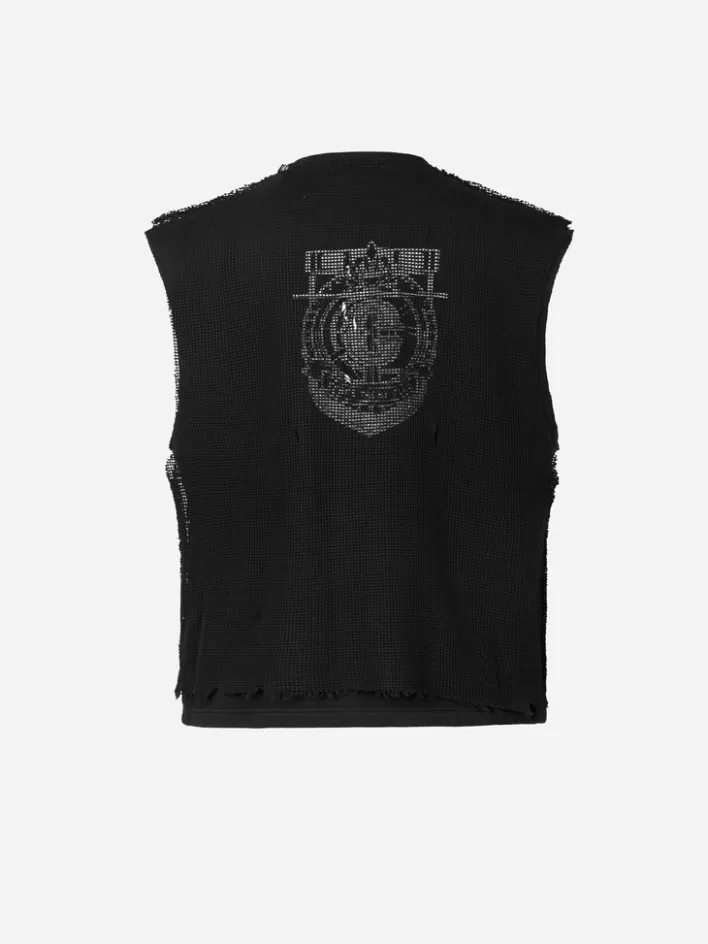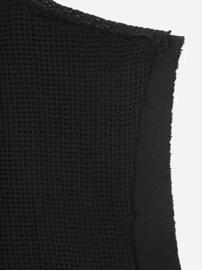 Fashion C2H4 005 – Distressed Knit Meshing Layered Vest Fogged Black