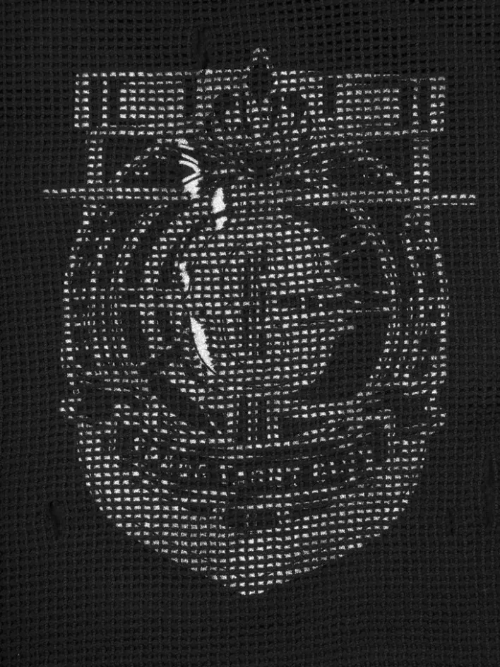 – Glitch Print Graphics- Distressing Throughout- Knit Net Out Layer- Model Is 6’1.7″ In Height And 154.32Lb In Weight- M…