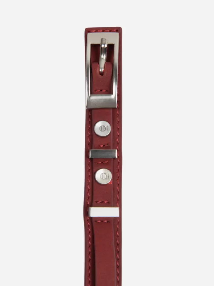– Cow Leather- Double Layered Construction- Logo Engraved Metal Trims Throughout- Logo Engraved Metal Tag At Wide Belt