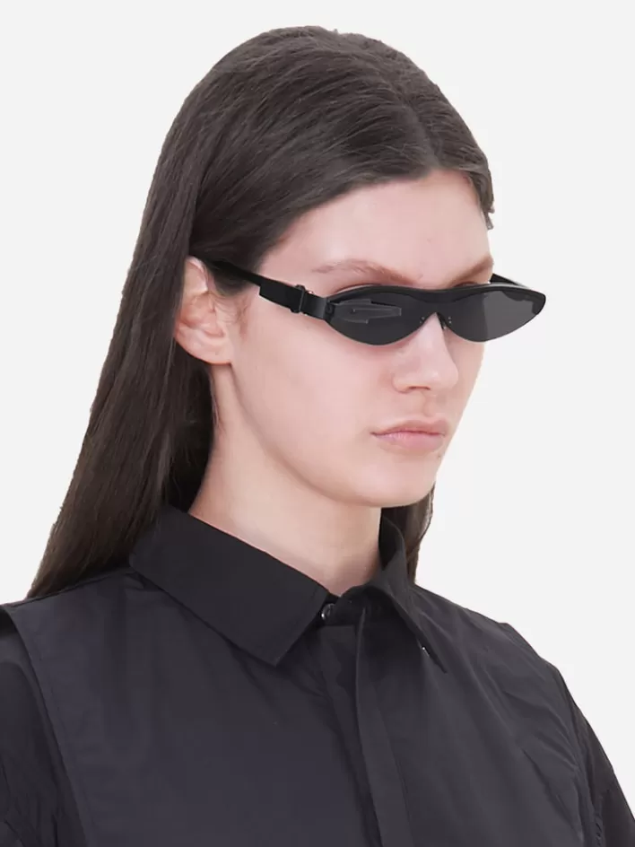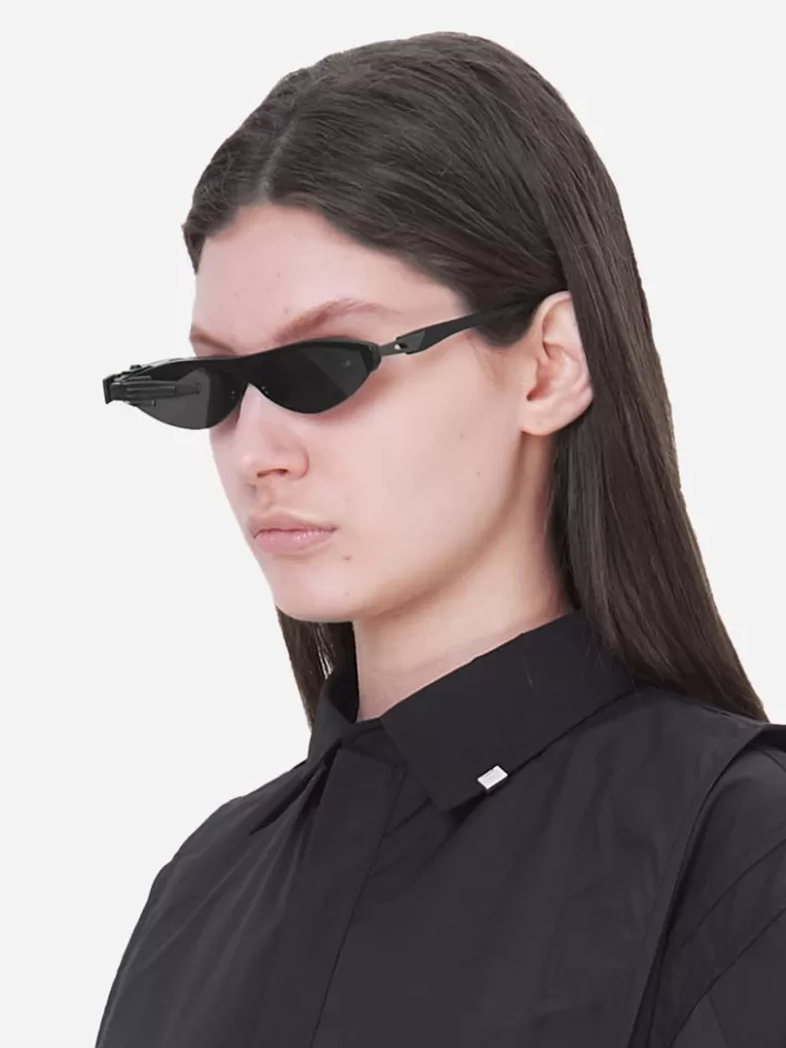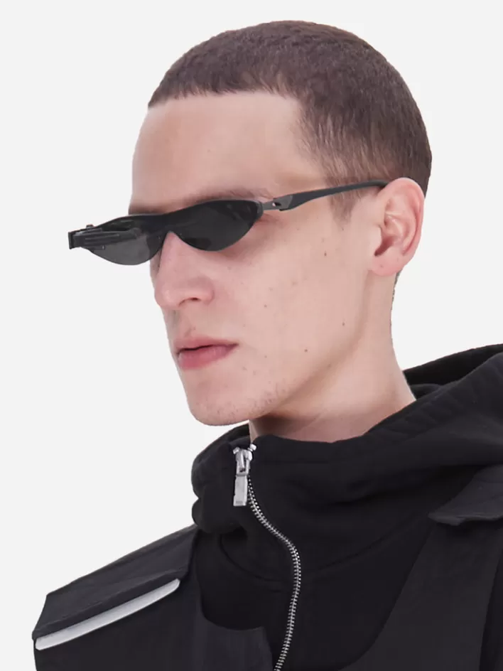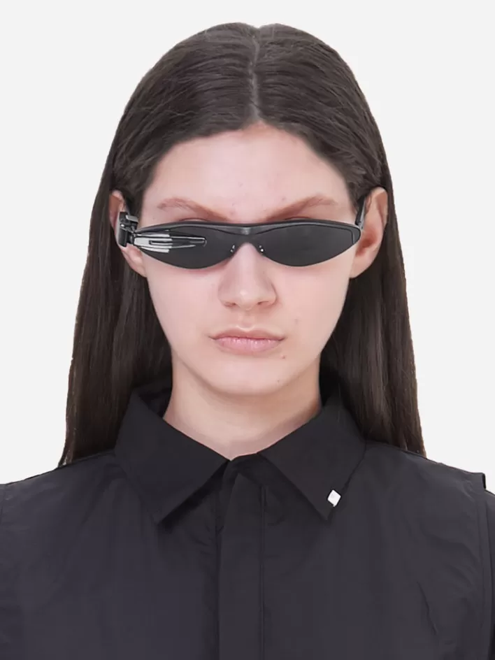 Oval Stainless Steel And Acetate Frame Sunglasses In Black-Tone. Black Lenses With 100% Uv Protection. Black Half-Transparent Rubber Nose Pads. Engraved Logo At Temples. Rubberized Temple Tips In Dark Gray. Glasses Featuring With Detachable Scouter Accessories In Black With Engraved Logo.