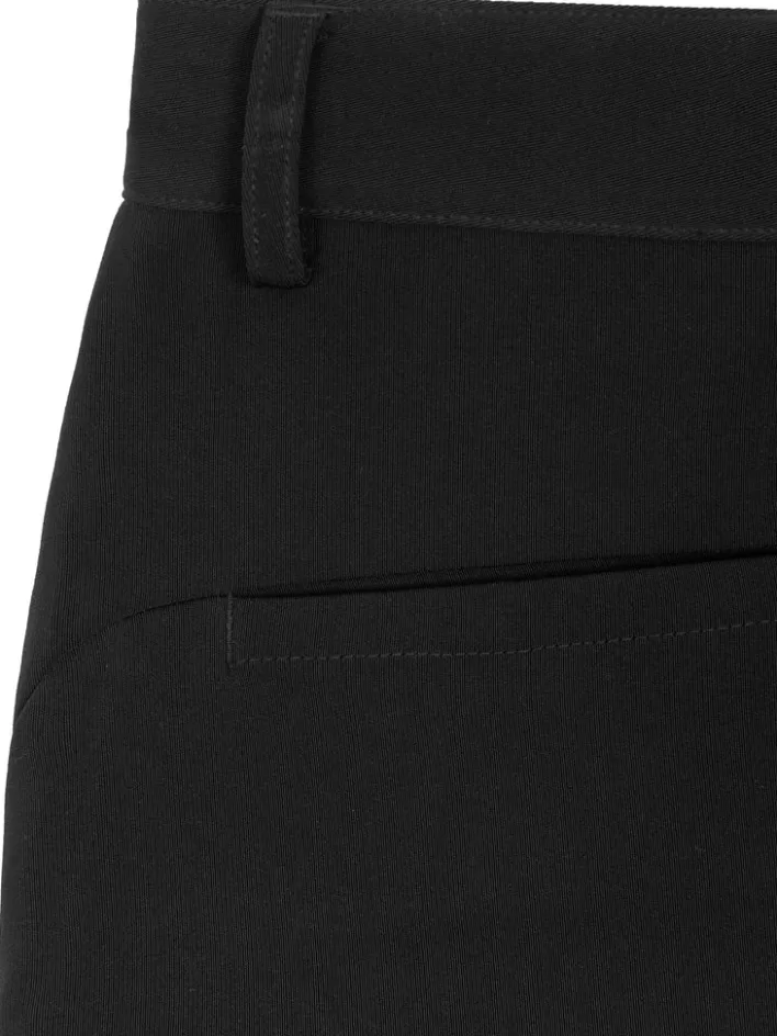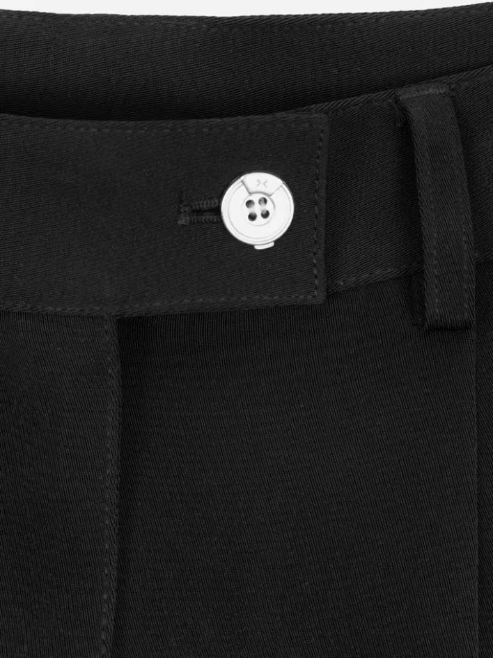 – Fitted Flared Trousers In Black- Mid-Rise- Zip-Fly- Layered Cuffs- Four Pocket Styling- Hidden Zipper Open At Side Cuf…