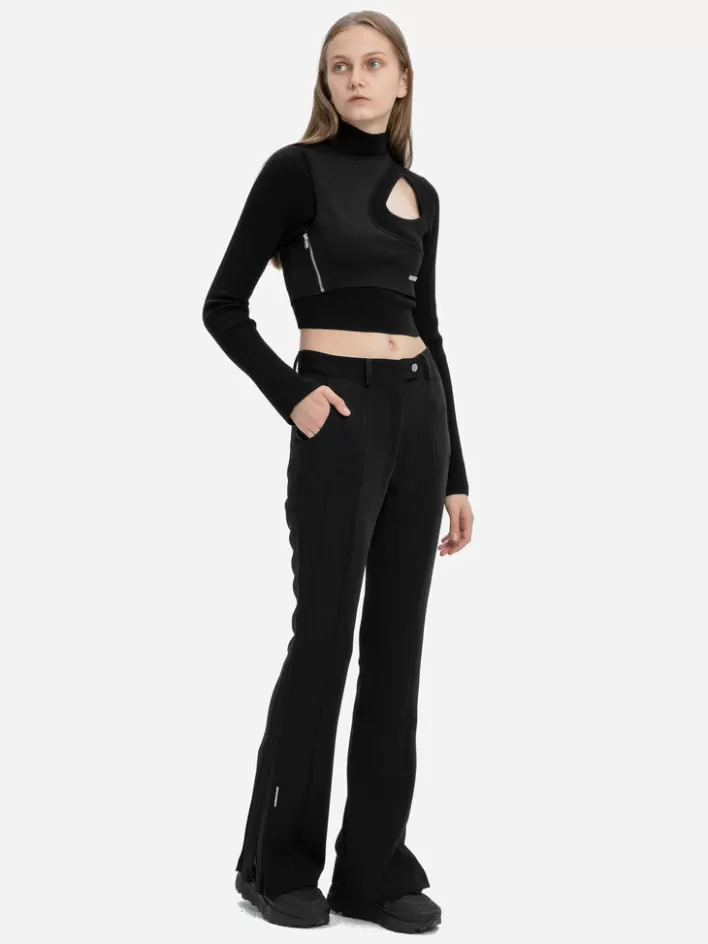 Flash Sale C2H4 004 – Arc Splicing Flappy Flared Trousers Matrix Black