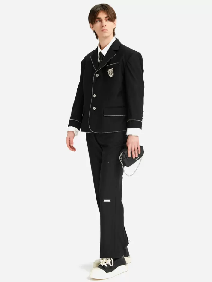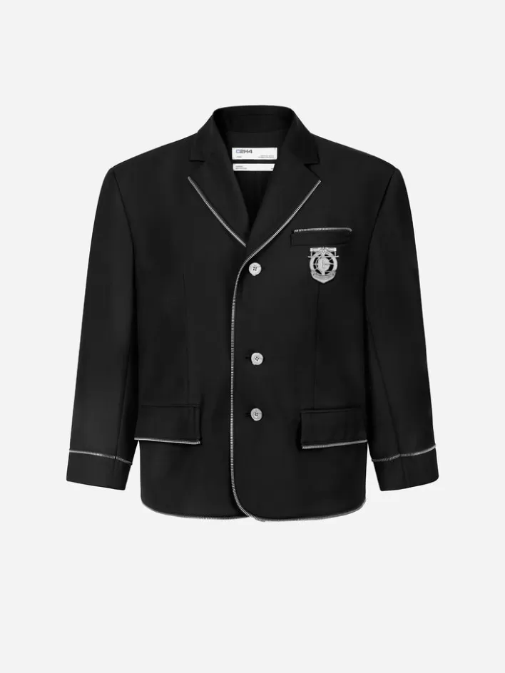 Flash Sale C2H4 005 – Zipper Piping Badged Tailored Jacket Solemn Black