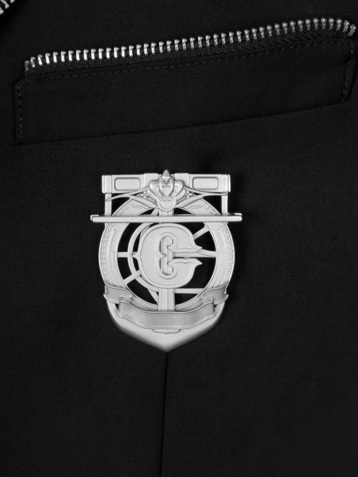 – Cuff With Zipper Details And Hand Stitched Collection Emblem Badge Button Set