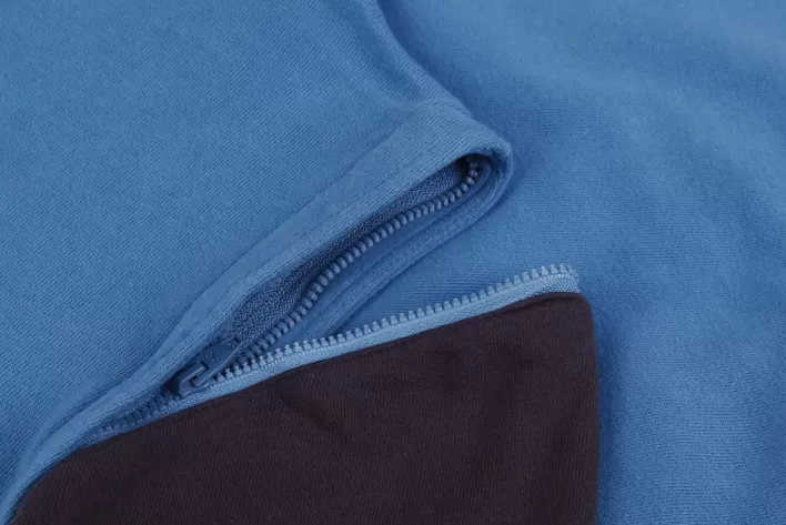 Boxy Long Sleeve Garment-Washed Fleece Hoodie In Grey And Blue. Drop Shoulder. Armhole With Zipper For Detachable Sleeve…