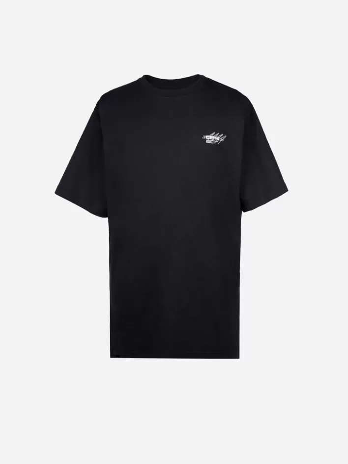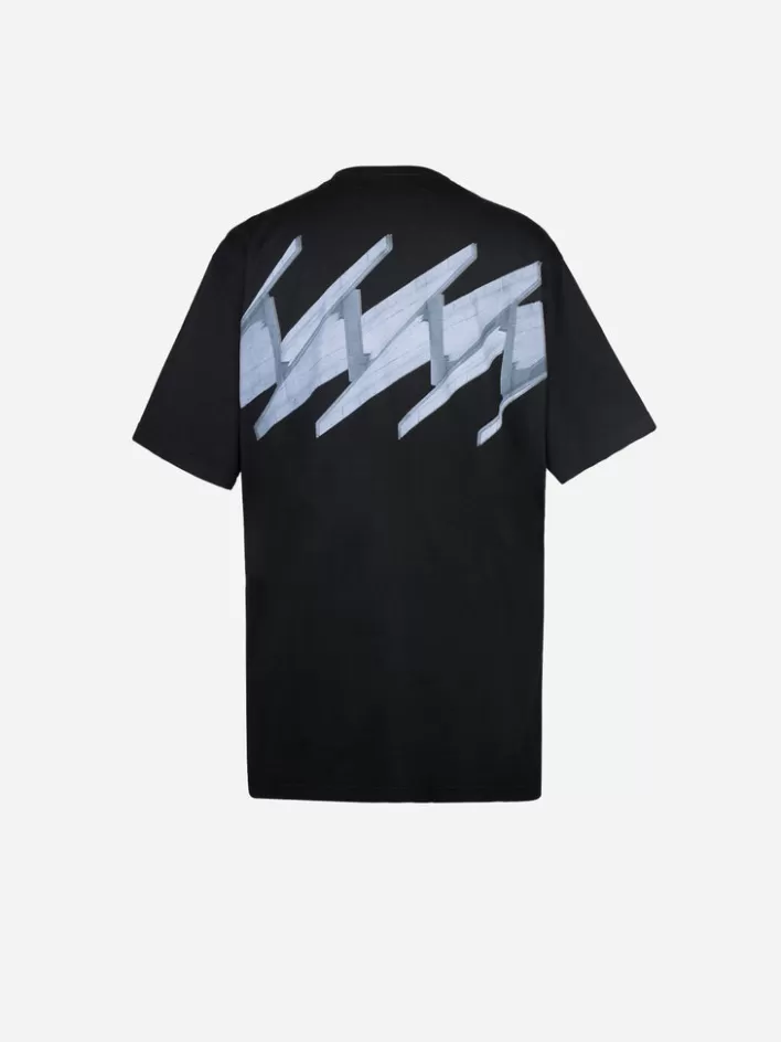 Short Sleeve Cotton Jersey T-Shirt. Rib Knit Crewneck Collar. Logo And Text Printed In White At Chest. Graphic Printed In Grey At Back. Tonal Stitching.