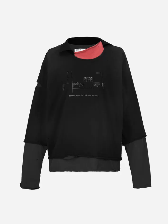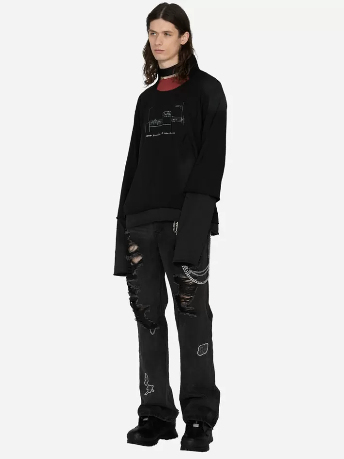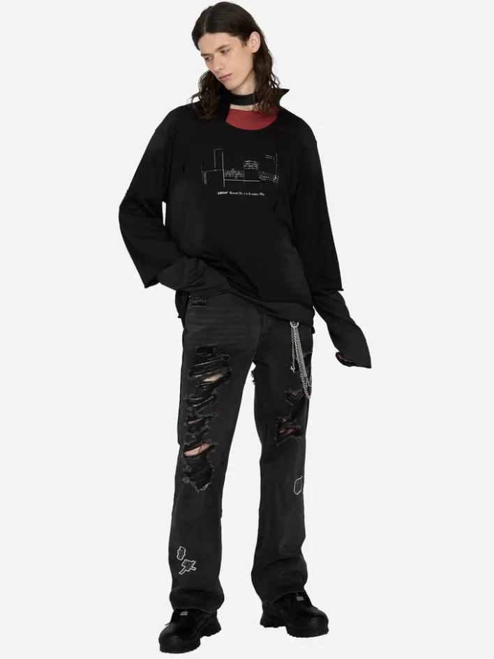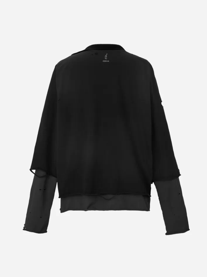 R003 027T BlacNew C2H4 003 – Panelled Distressed Double Layer Long-Sleeve T-Shirt Black