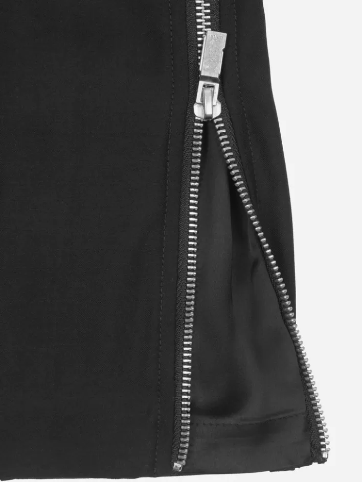 – Arc Pattern Cutting- Slant Pockets At Front- Acetate Under-Layer At Side- Two Way Zipper Closure At Side- Welt Pockets…
