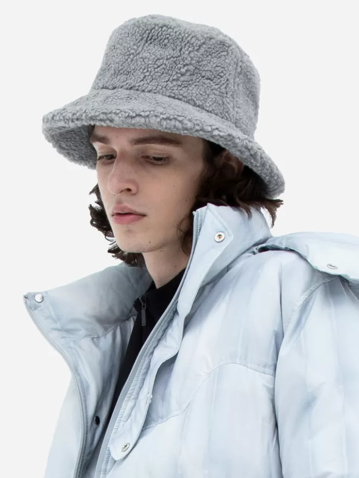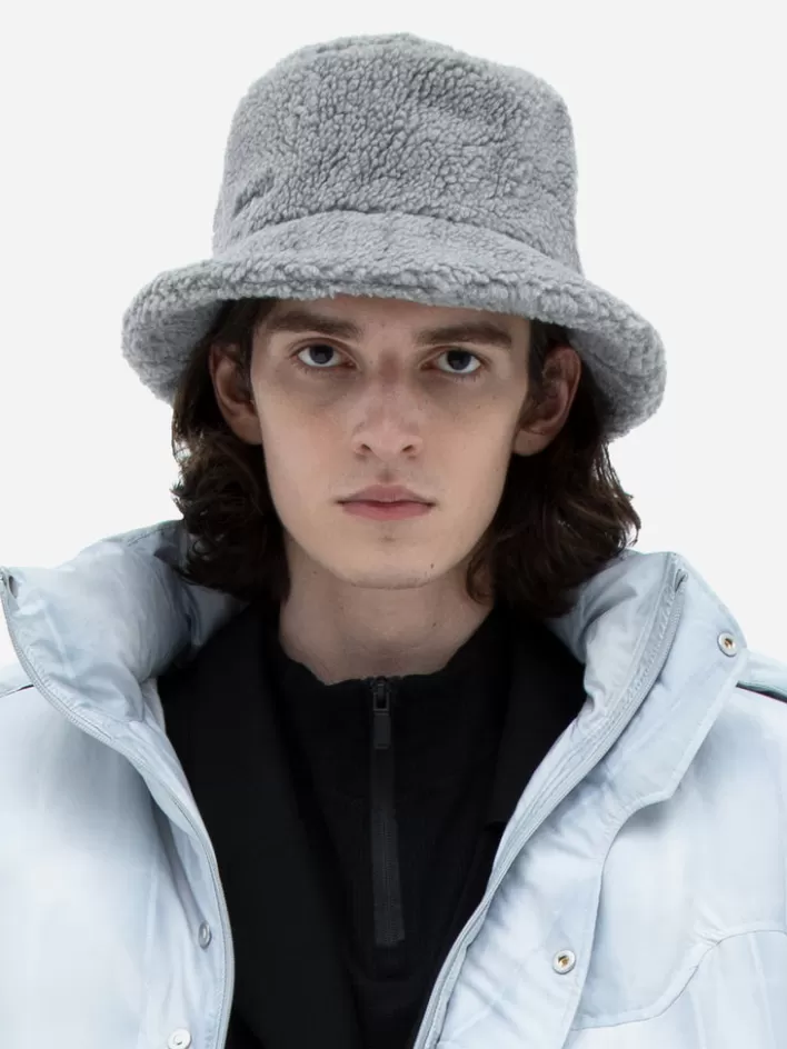 Structured Sherpa Bucket Hat. Tonal Logo Embroidered At Face. Logo Engraved Metal Stick At Brim. Tonal Cotton Jersey Lining. Approx. 2″ Brim Length.