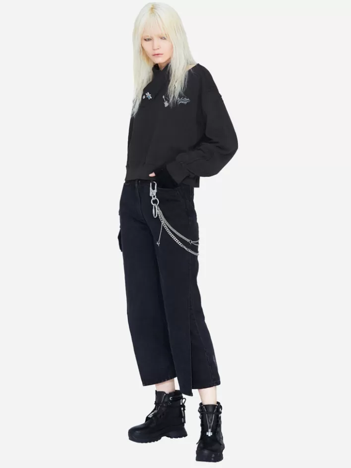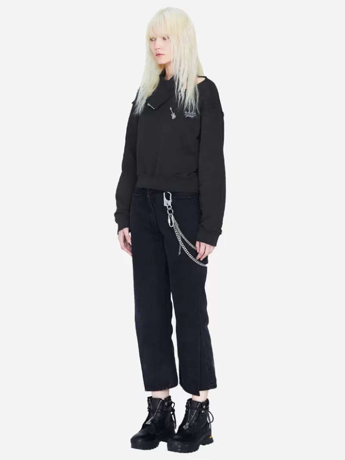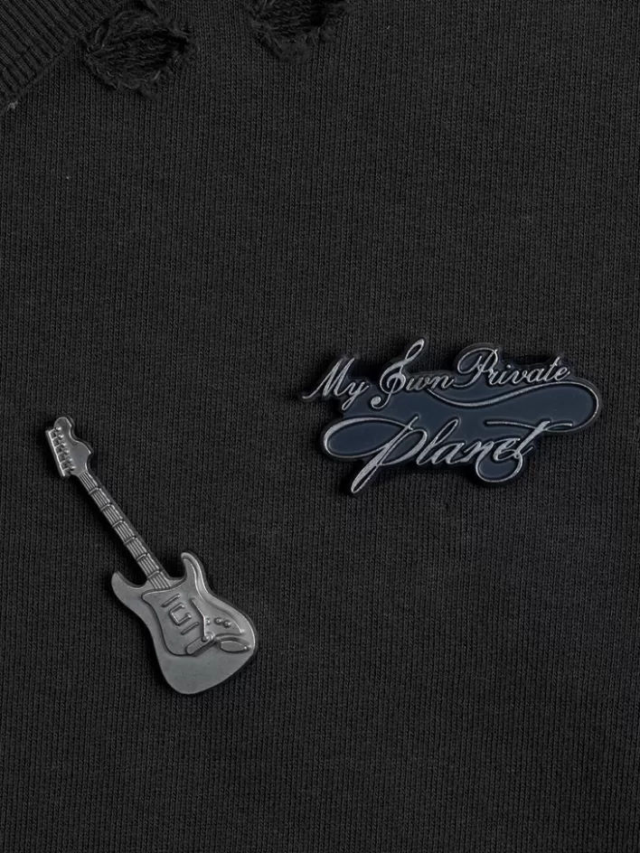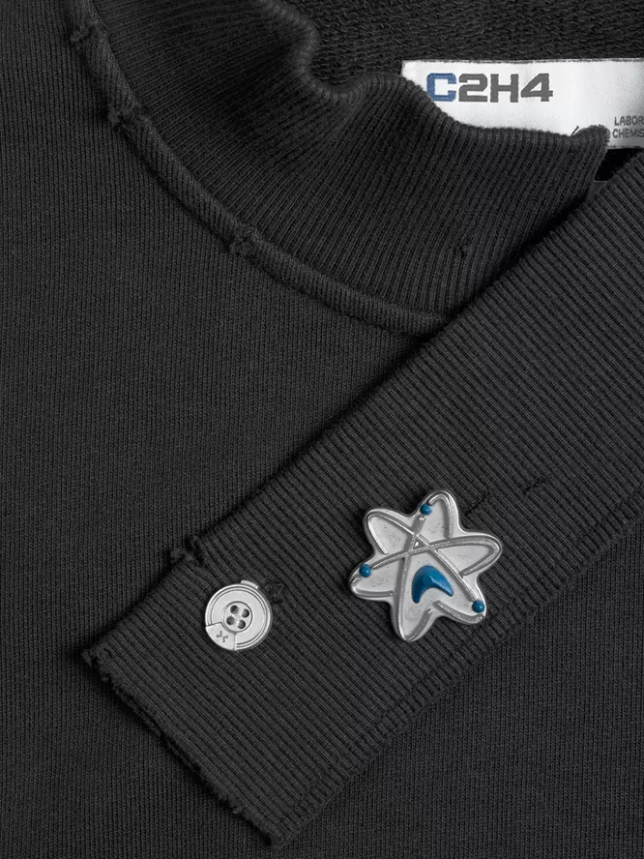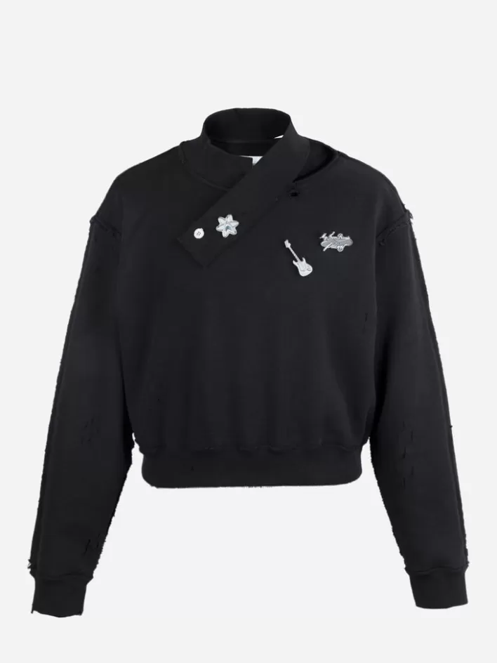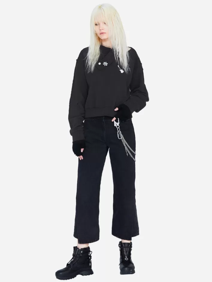 Long Sleeve French Terry Sweatshirt In Dark Gray. Rib Knit Crewneck Collar With Hollowed Up Details. Rib Knit Cuffs, Hem. Overlocking Raw Edge Throughout. Features Special Collection Pin Set.