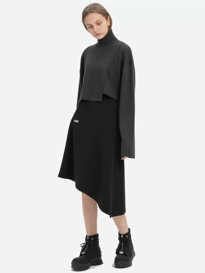 Online C2H4 004 – Asymmetrical Turtleneck Sweater Fuzzy Gray