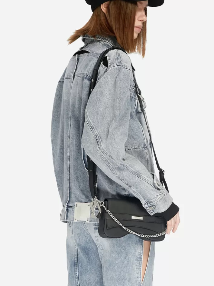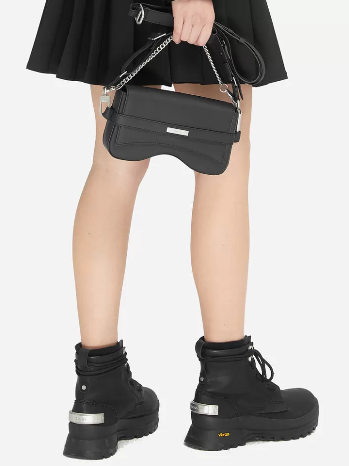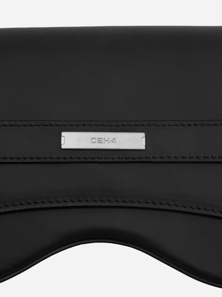 Online C2H4 005 – “Callisto” Curved Leather Shoulder Bag Black