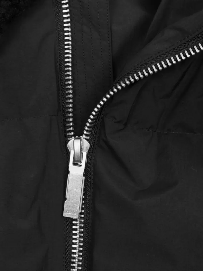 – Faux Shearling Collar- Adjustable Stripe At Side- Hidden Elastic Drawstring At Hem- Zipper Detail At Back Neck- Logo E…