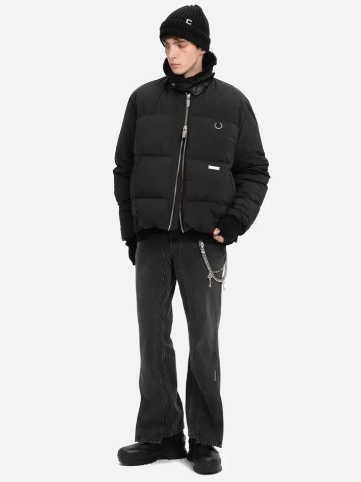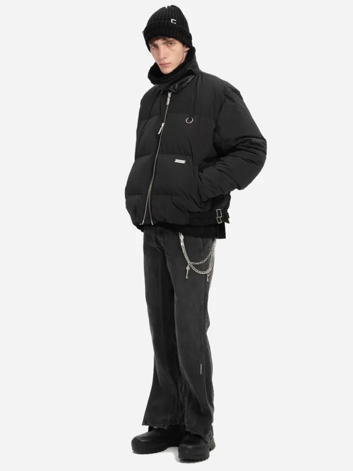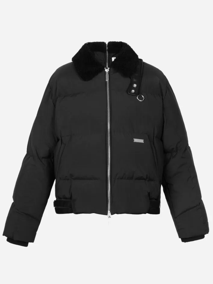 Sale C2H4 004 – Faux-Fur Collar Stripe Down Jacket Matrix Black