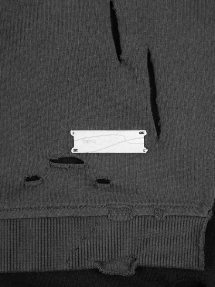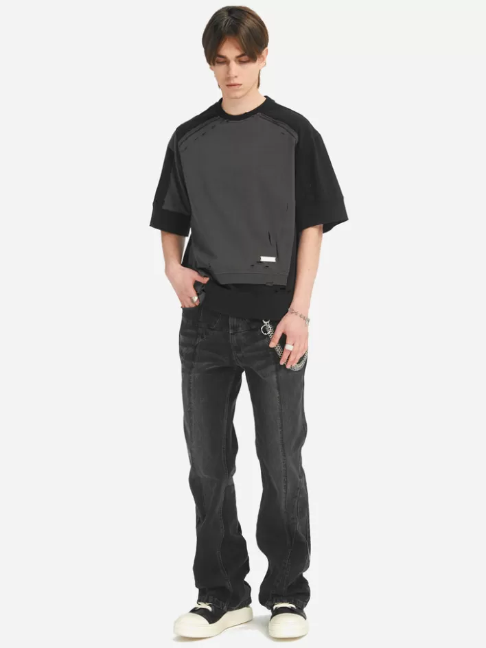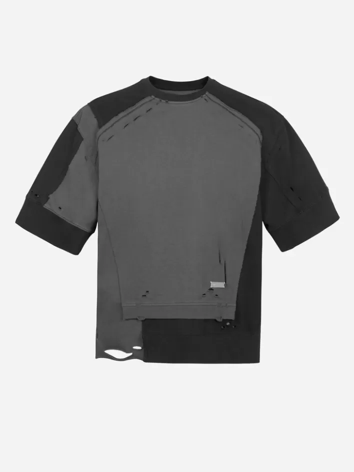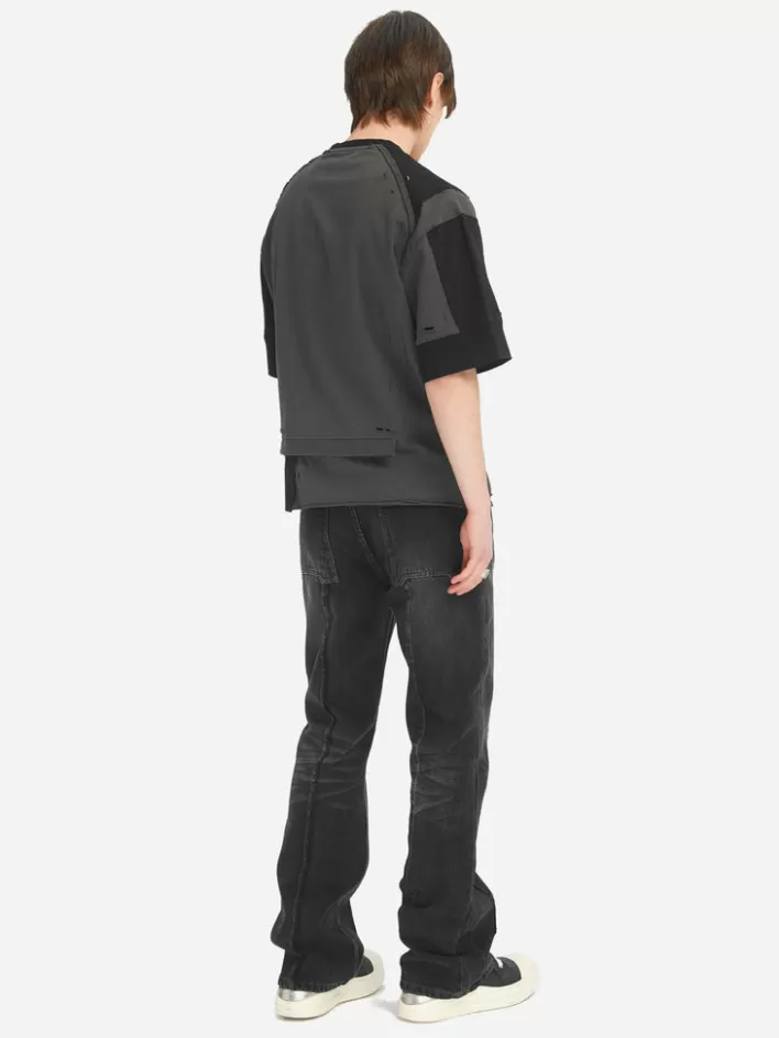 Shop C2H4 005 – Distressed Panelled Vagrant T-Shirt Black