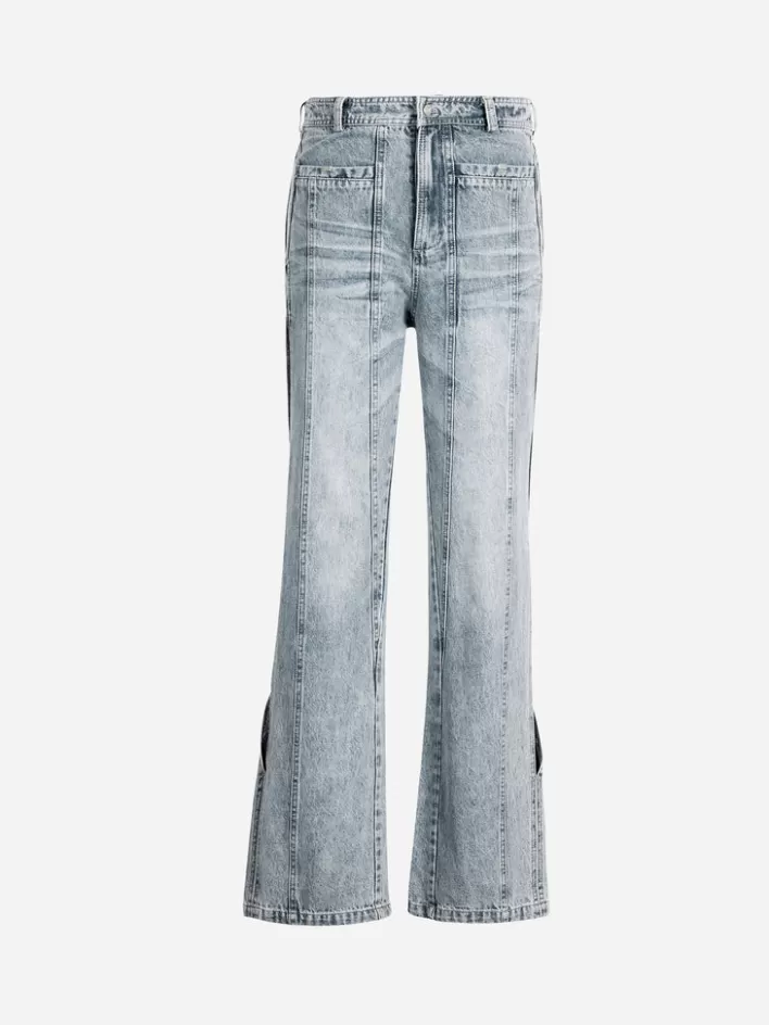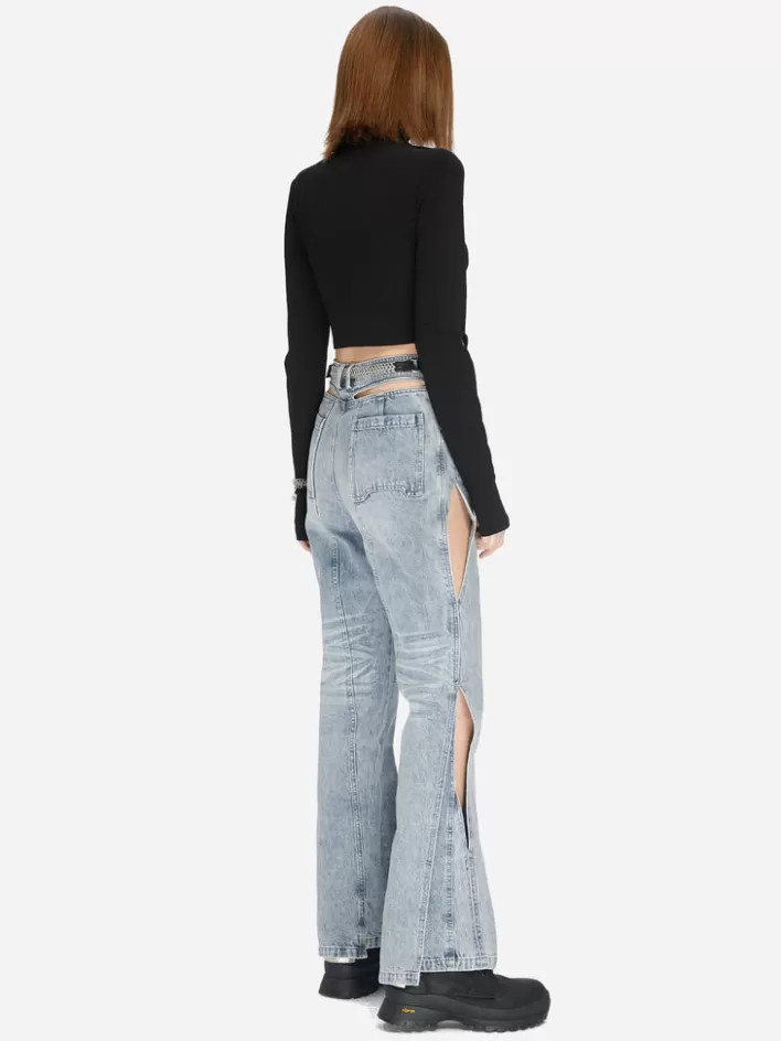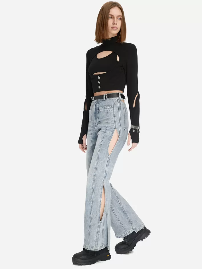 Shop C2H4 005 – Layering Paneled Cut-Out Jeans Faded Blue