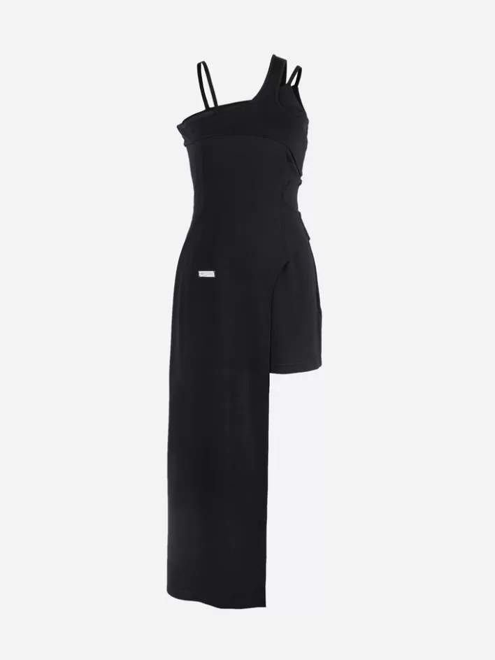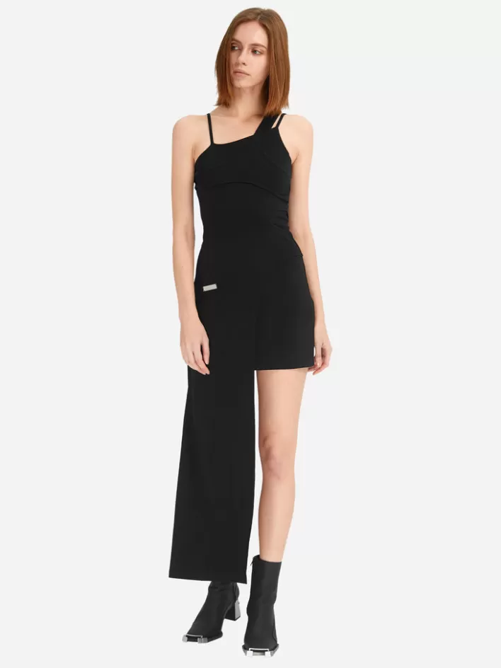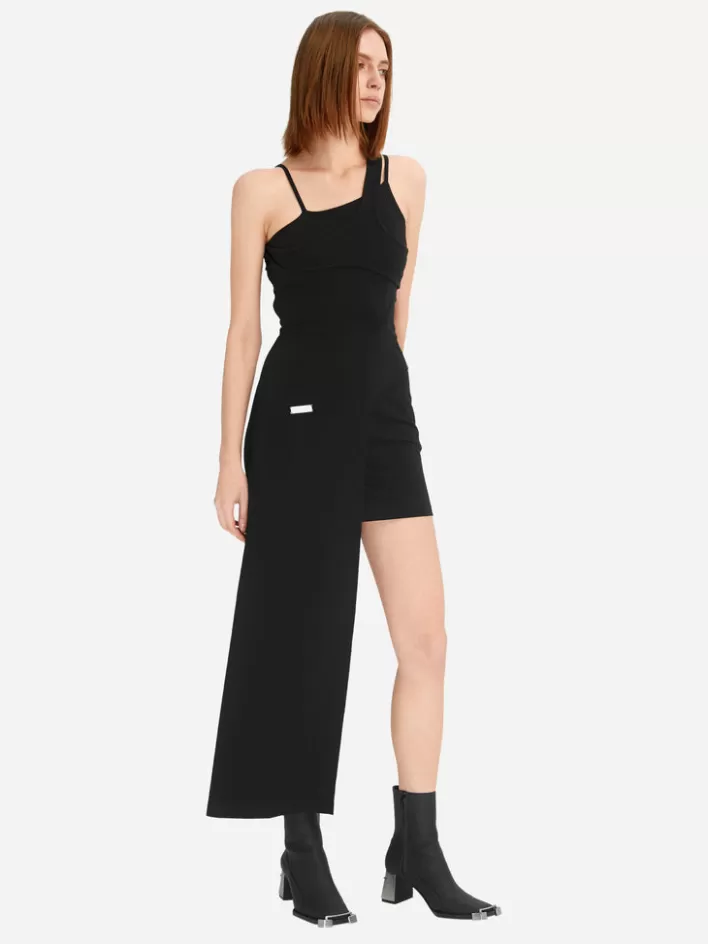 – Sleeveless Asymmetric Midi Dress In Black