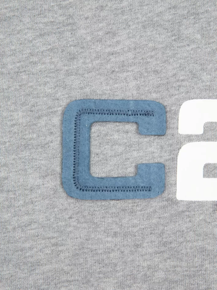 – Screen Print Letters- Wool Felt Applique Capital C At Back- Model Is 6’2″ In Height And 150Lbs In Weight- Model Wears Size L